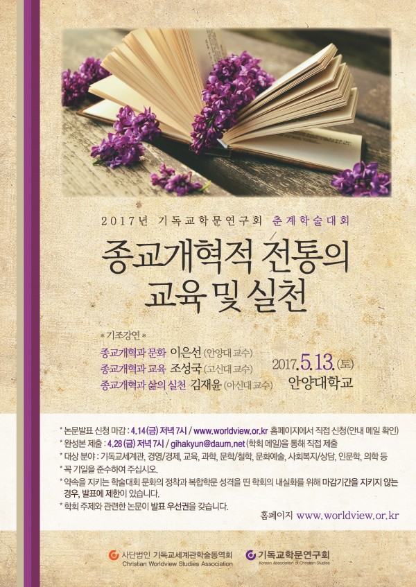 2017년 5월 13일(10:00-18:00) 기독교학문연구회 춘계학술대회
