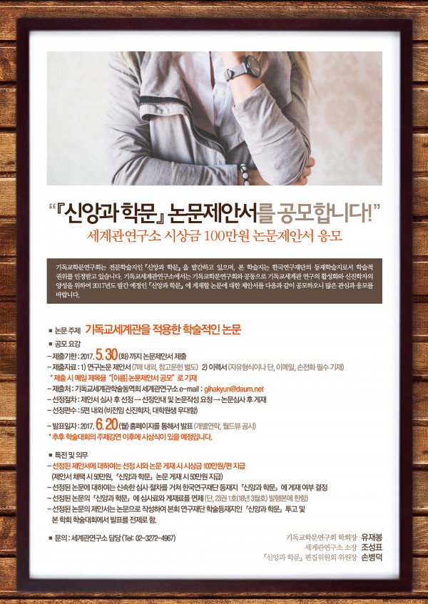더불어 공지드릴 것은 기독교세계관연구소에서 기독교학문연구회와 공동으로 『신앙과 학문』논문제안서를 공모합니다.