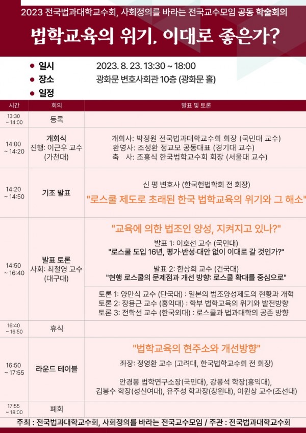 2023 전국법과대학 교수회, 사회정의를 바라는 전국교수모임 공동 학술회의 (2023.08.23)